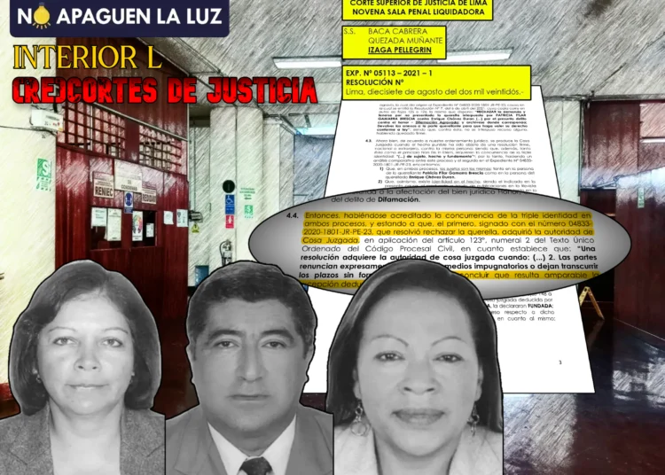 [Actualización al 10 de mayo del 2025] NO APAGUEN LA LUZ cumple con informar que el caso fiscal n.° 502018301-2023-399-0 en el cual se denunció penalmente por prevaricato a los vocales de la Novena Sala Penal Liquidadora, Raúl Emilio QUEZADA MUÑANTE, Araceli Denyse BACA CABRERA y Josefa Vicenta IZAGA PELLEGRÍN, ha quedado completamente archivada en razón de la disposición fiscal superior numerada como “DISPOSICIÓN N° 133-2025-MP-FN-1°FUSPR.P” de fecha 29 de abril del 2025 donde con notoria resignación el fiscal supremo titular Pablo Wilfredo SÁNCHEZ VELARDE confirma que en efecto el rechazo liminar de una querella no generaría cosa juzgada -como lo sostuvieron los vocales denunciados- y que ello pone de relieve la existencia de una motivación incompleta, pero que no constituye un hecho falso, sino una “interpretación” y que aun cuando pueda resultar cuestionable, no es suficiente para acusarlos de prevaricato. Así, la disposición de archivo ha sido declarada firme mediante “DISPOSICIÓN 5-2025-MP-FN-FSEDCFP” de fecha 6 de mayo del 2025.