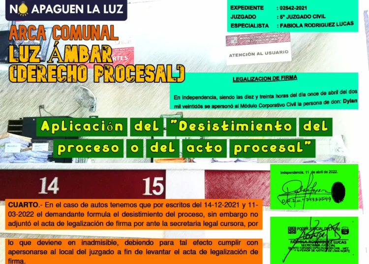 En esta ocasión les mostramos cómo aplicar el art. 343 del Código Procesal Civil con un caso nuestro y que nos dio una lección ahora en tiempos de pandemia: el escrito de desistimiento se debe presentar de forma presencial y no virtual, ya que el acta de legalización de firma en el mismo módulo civil de la Corte Superior de Justicia de Lima Norte y este trámite no se puede hacer de forma virtual, al menos así nos muestra este caso del proceso judicial de Habeas data contenido en el Exp. n.° 02542-2021-0-0901-JR-CI-05.