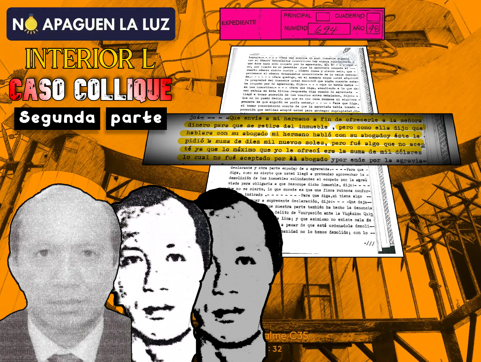 La fiscal provincial Blanca Alejandrina ACOSTA SIHUAS en la carpeta fiscal n.° 487-98 el 10 de setiembre de 1998 formalizó denuncia penal contra Ricardo MONT LING y Oswaldo CALDERÓN LING por la presunta comisión del delito contra el patrimonio en la modalidad de usurpación en agravio de Alicia COLCHADO CASTILLO, luego la jueza penal Celinda Enedina SEGURA SALAS abrió instrucción a los denunciados. Los fundamentos de la fiscal hundían a Mont y a su hermano, porque el caso criminal se resumía de forma sencilla: Ricardo MONT LING procedió, de forma dolosa, con la demolición, encargando la tarea a su hermano Oswaldo y un grupo de 15 matones, de una habitación sobre la cual su empresa no tenía autorización municipal para tales efectos. El objetivo de Mont era despojar a la modesta posesionaria, familia incluida, para conseguir construir el proyecto inmobiliario para FOVIPOL en el terreno de una quinta en Breña; el constructor jamás se comunicó directa y formalmente con la posesionaria, ni mucho menos la invitó a conciliar o inició un juicio por desalojo. A medida que el proceso penal avanzaba, la historia criminal se hacía cada vez más perturbadora. Pues la jueza llegó a preguntar sobre un posible pago (por no decir soborno), quería conocer quién fue la persona que pidió, de forma irregular, dinero para acabar con el pleito. En su declaración preventiva, la agraviada aclaró sobre la coima y acusó a Oswaldo CALDERÓN LING que fue este quien le dijo a su abogado (de la agraviada) “que dejara el juicio por la suma de cinco mil nuevos soles y no se entrometiera”. Calderón no declaró en el proceso, pero sí lo hizo Mont. En su declaración instructiva, reconoce que nunca tuvo algún trato directo con la agraviada. Luego, ante la perspicaz pregunta del fiscal Isidro GÁLVEZ NÚÑEZ sobre si “al tomar conocimiento cierto de que la agraviada había tomado posesión qué medidas adoptó usted para proteger su propiedad” Ricardo Mont señaló, sin inmutarse, que envió a su hermano a fin de ofrecerle a la señora dinero para que se retire del inmueble, pero como ella dijo que hablara con su abogado mi hermano habló con su abogado y este le pidió la suma de diez mil nuevos soles, pero fue algo que no acepó ya que lo máximo que le ofreció era la suma de mil dólares lo cual el abogado de la agraviada rechazó, Mont además asume que la agraviada también rechazó la oferta porque “está influenciada por el letrado”. Reiteró que no conocía ni habló con la agraviada y que todos los trámites lo hizo su hermano Oswaldo CALDERÓN LING, al viejo estilo de los “dealers” para negociar y entregar el dinero. Esto pinta de cuerpo entero a Mont: fuera del margen del Derecho y de las buenas costumbres y aquí, como siempre hacemos, mostramos los documentos.