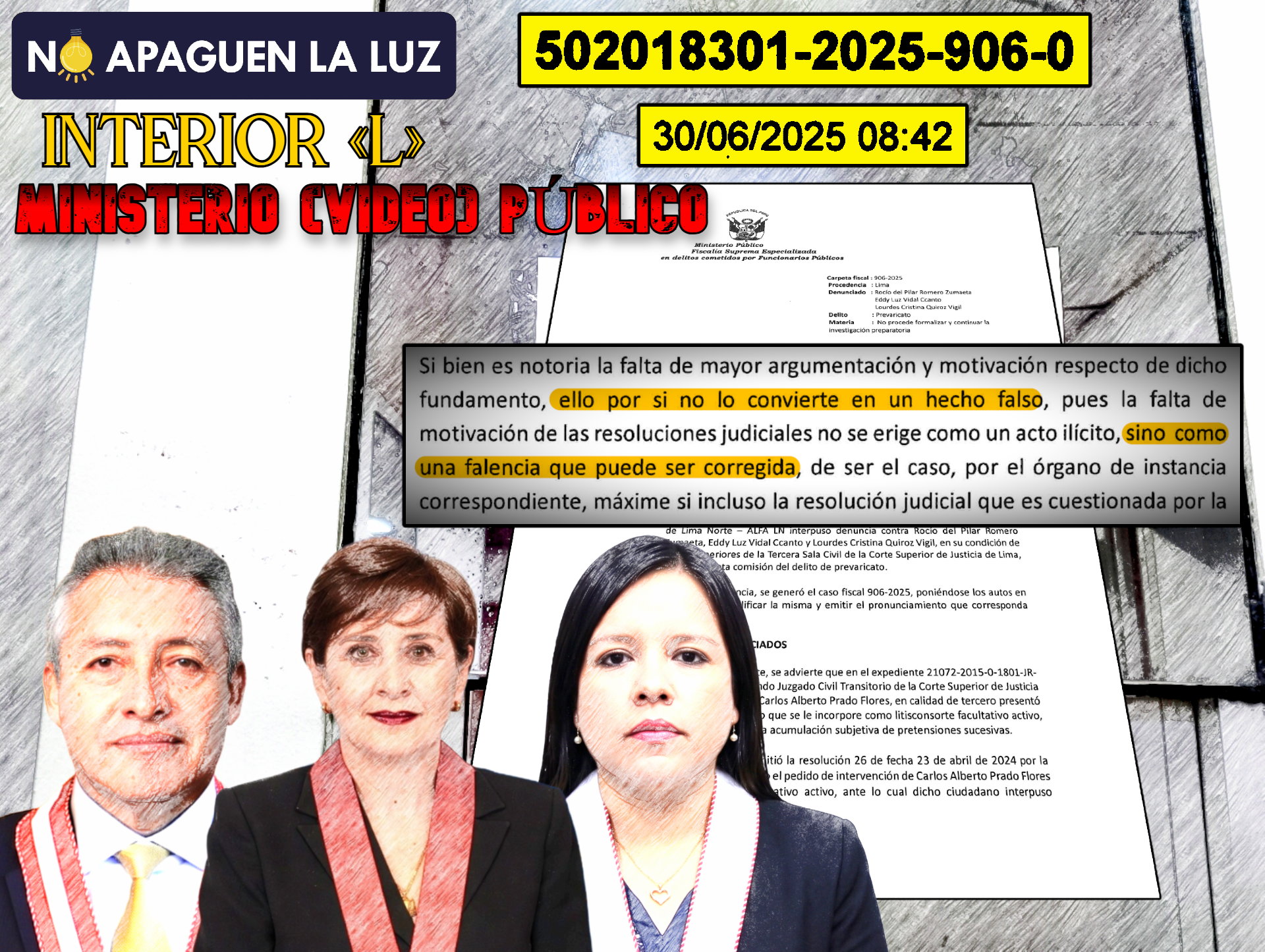 1.1.- El 27 de junio de 2025, la Asociación de Líderes en Fiscalización y Anticorrupción de Lima Norte – ALFA LN interpuso denuncia contra Rocío del Pilar Romero Zumaeta, Eddy Luz Vidal Ccanto y Lourdes Cristina Quiroz Vigil, en su condición de juezas superiores de la Tercera Sala Civil de la Corte Superior de Justicia de Lima, por la presunta comisión del delito de prevaricato.