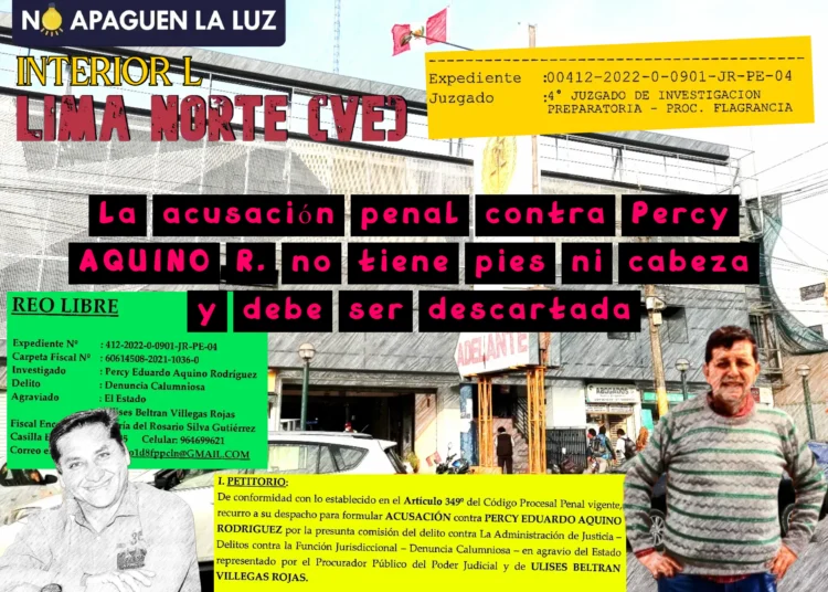 El fiscal provincial Robert HERNÁNDEZ PAREDES acaba de presentar la acusación fiscal contra Percy Eduardo AQUINO RODRÍGUEZ porque supuestamente este cometió el delito de denuncia calumniosa en agravio de Ulises Beltrán VILLEGAS ROJAS y pide un año de pena privativa de la libertad para Aquino. La cosa es que esa supuesta denuncia calumniosa que está utilizando el fiscal Hernández para sustentar su acusación penal fue la legítima presentación ni siquiera de una denuncia penal, sino de un escrito en calidad de tercero en base a material preparado también por terceros, específicamente dos videos, para que amplíen las investigaciones con respecto a un caso fiscal ya iniciado que era el caso fiscal n.° 606015500-2018-159-0 (donde inicialmente estaba investigado Ulises pero luego lo excluyeron). De tal forma que la génesis de ese caso que Ulises pretende mostrar como “denuncia calumniosa” fue iniciado por cuenta del fiscal. Luego, el primer video es que se difundió harto en redes sociales en el 2018 en el cual Ulises Villegas con el chaleco de la municipalidad de Comas (azul y amarillo), es decir, que no es que estaba en una actividad de su vida personal como cualquier mortal en estas tierras, sino en ejercicio de sus funciones como teniente alcalde de la gestión de Miguel Saldaña. Ahora, lo que se oye hablar tampoco es algo que tiene que ver con un ejercicio regular de funciones de regidor, sino habla sobre obras en lenguaje soez y con personas que tampoco pueden ser calificados como administrados o ciudadanos comunes y corrientes que han acudido a la ayuda de un regidor. Pues ahí entra el otro tema, que la tertulia entre Villegas y los sujetos no identificados es sobre una obra y cómo participar en su ejecución (pues se habla de maquinarias y asfalto). Para el carro ¿qué michi tiene que ver un teniente alcalde con obras en el distrito? Y ahí no se detiene esta historia que más se inclina para policiales, pues Villegas hace mención a los gemelos de Collique (sicarios, ultimados justo por esa fecha) que lo han buscado y que les pidió a estos facinerosos cuántas firmas han traído. La única excusa que dio Ulises, y que le valió para que archivaran esa denuncia penal en su contra, es que se había topado con delincuentes y para poder pasar piola tenía que hablar en su lenguaje. Esto basta para hacer esta nota en defensa del derecho que tenemos todos de denunciar lo que a todas luces, y para cualquier, resulta algo delictivo o sospechoso y todavía en un servidor público que está sujeto a la crítica y al cuestionamiento en sus diversas formas como lo es una legítima denuncia. Que Percy Aquino sea rojo (quizá el único pecado de Percy en política sea ese), no da mérito para que sea sancionado con un delito de Denuncia calumniosa que no ha cometido y que para este caso queda descartado. Y lo único que pretende Ulises con esto no es hacer justicia sino curarse en salud al pretender mostrarse como impoluto utilizando un caso que no tiene ni pies ni cabeza y que el juez a cargo debe mandar a la papelera de reciclaje. Y lo pretende hacer cuando tiene una acusación penal, y más grave todavía, pendiente. No se pase.