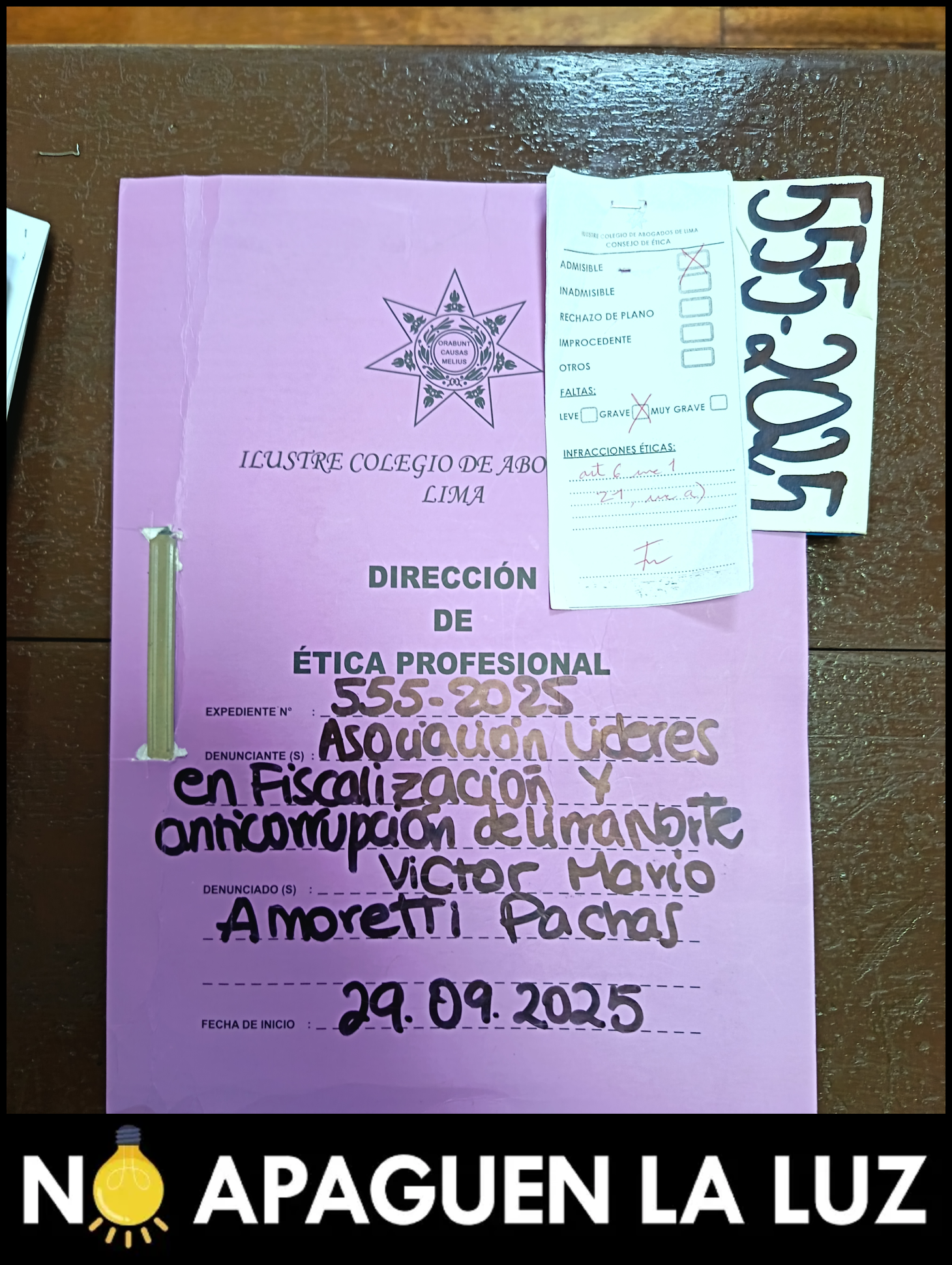 La denuncia por conducta antiética que presentó la asociación ALFA LN contra el abogado Mario Amoretti Pachas, ex decano del Colegio de Abogados de Lima (CAL), tras descubrirse que recibió un pago de su contraparte en un caso penal, obtuvo un portazo en la cara por parte de la Dirección de Ética del aludido colegio y en el cual intervinieron tres integrantes, quienes se negaron a iniciarle procedimiento disciplinario, pues exigen que la denuncia la formule alguien que tenga “legitimidad” (¿?) o que esté directamente involucrado en los hechos, sino, la denuncia no vale y a Amoretti ni con el pétalo de una rosa ¿Cómo la ven?