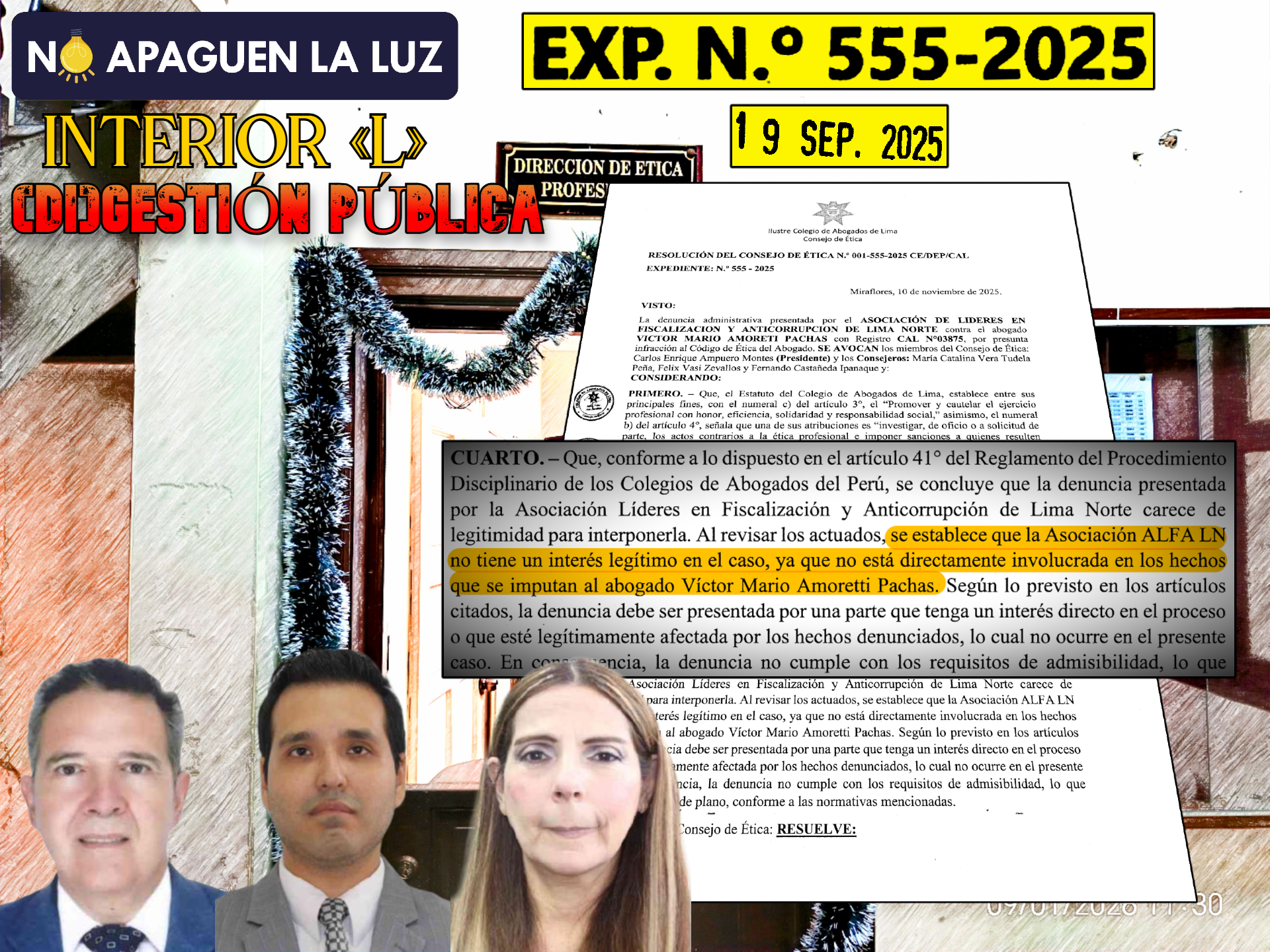 La denuncia por conducta antiética que presentó la asociación ALFA LN contra el abogado Mario Amoretti Pachas, ex decano del Colegio de Abogados de Lima (CAL), tras descubrirse que recibió un pago de su contraparte en un caso penal, obtuvo un portazo en la cara por parte de la Dirección de Ética del aludido colegio y en el cual intervinieron tres integrantes, quienes se negaron a iniciarle procedimiento disciplinario, pues exigen que la denuncia la formule alguien que tenga “legitimidad” (¿?) o que esté directamente involucrado en los hechos, sino, la denuncia no vale y a Amoretti ni con el pétalo de una rosa ¿Cómo la ven?